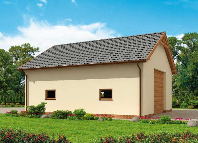 Technologia tradycyjna: ściany zewnętrzne nośne murowane grubości 25cm, wszystkie ściany wykonane pustaków ceramicznych "POROTHERM", więźba dachowa drewniana, pokrycie dachu dachówka ceramiczna, wymiar bramy garażowej 4,4 x 4,1m.