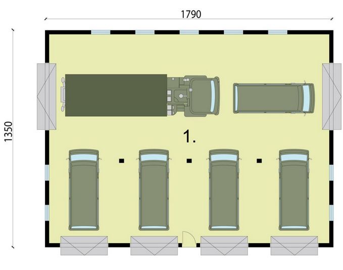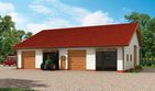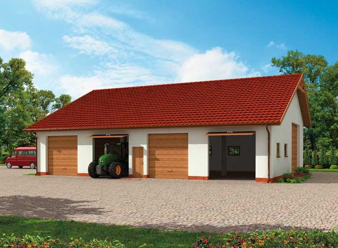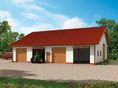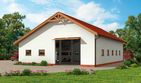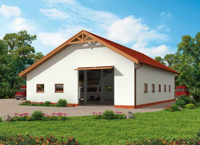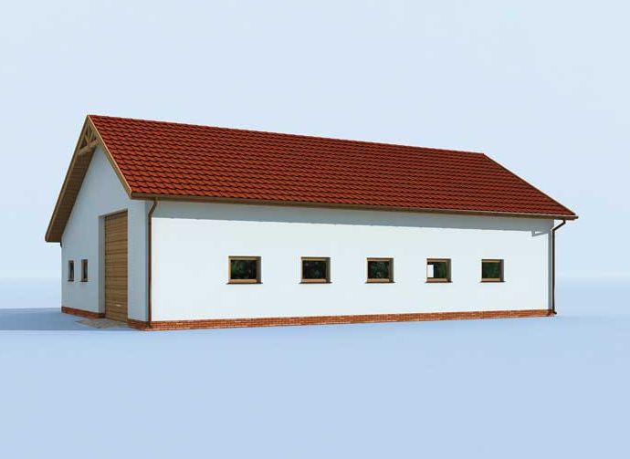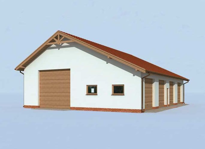 Technologia tradycyjna: ściany zewnętrzne nośne murowane grubości 25cm, wszystkie ściany wykonane z pustaków ceramicznych "POROTHERM", więźba dachowa drewniana, pokrycie dachu dachówka ceramiczna, wymiary bram garażowych 2 x 4,2 x 4,0m i 4 x 3,0 x 3,0m.