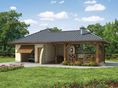 Graficzne opracowanie rzutów poglądowych widocznych na karcie projektu zostało wykonane przez Extradom.pl. Prezentowane przez Extradom.pl wizualizacje wykonane zostały przez autora projektu i należy poczytywać je jedynie za przykład i propozycję wykończenia, wizję architektoniczną autora projektu. Ostateczne wykończenie budynku może nastąpić na wiele sposobów. Szczegółowe rozwiązania zastosowane w oferowanej dokumentacji - w tym również ilość, lokalizacje i wygląd okien, drzwi, kominów - mogą w niewielkim stopniu różnić się od prezentowanej wizualizacji budynku.