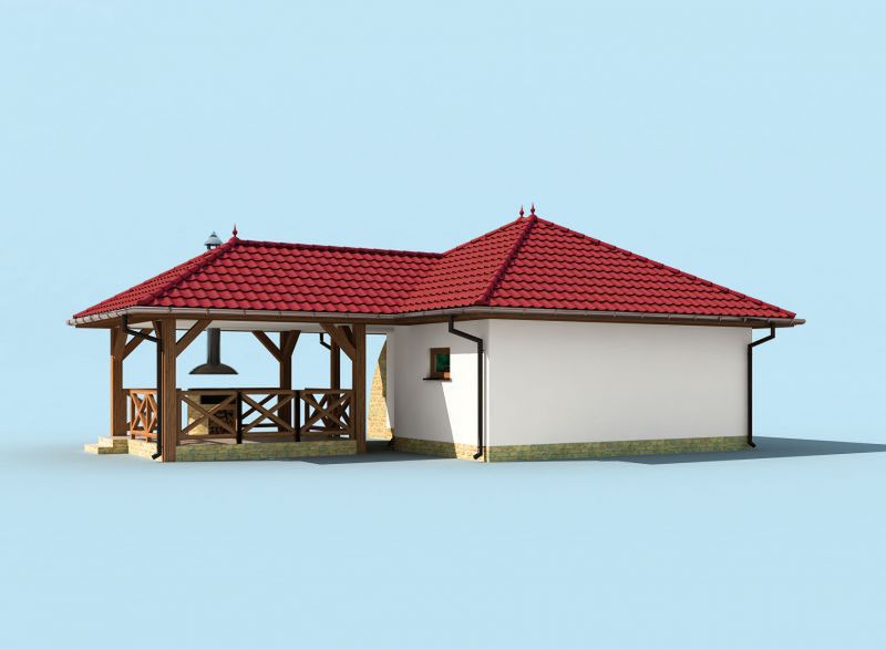 Graficzne opracowanie rzutów poglądowych widocznych na karcie projektu zostało wykonane przez Extradom.pl. Prezentowane przez Extradom.pl wizualizacje wykonane zostały przez autora projektu i należy poczytywać je jedynie za przykład i propozycję wykończenia, wizję architektoniczną autora projektu. Ostateczne wykończenie budynku może nastąpić na wiele sposobów. Szczegółowe rozwiązania zastosowane w oferowanej dokumentacji - w tym również ilość, lokalizacje i wygląd okien, drzwi, kominów - mogą w niewielkim stopniu różnić się od prezentowanej wizualizacji budynku.