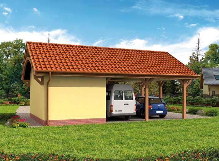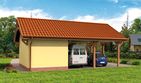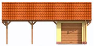Technologia tradycyjna: ściany zewnętrzne nośne murowane grubości 25cm, wszystkie ściany wykonane pustaków ceramicznych "POROTHERM", więźba dachowa drewniana, pokrycie dachu dachówka ceramiczna, wymiar bramy garażowej 2,4 x 2,4m.