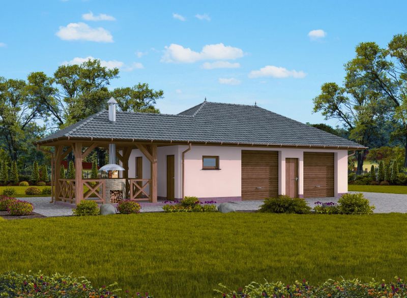 Technologia tradycyjna: ściany zewnętrzne nośne murowane grubości 25cm, wszystkie ściany wykonane pustaków ceramicznych "POROTHERM", więźba dachowa drewniana, pokrycie dachu dachówka ceramiczna, wymiar bramy garażowej 2,4 x 2,4 m.