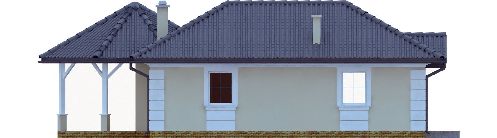 Graficzne opracowanie rzutów poglądowych widocznych na karcie projektu zostało wykonane przez Extradom.pl. Prezentowane przez Extradom.pl wizualizacje wykonane zostały przez autora projektu i należy poczytywać je jedynie za przykład i propozycję wykończenia, wizję architektoniczną autora projektu. Ostateczne wykończenie budynku może nastąpić na wiele sposobów. Szczegółowe rozwiązania zastosowane w oferowanej dokumentacji - w tym również ilość, lokalizacje i wygląd okien, drzwi, kominów - mogą w niewielkim stopniu różnić się od prezentowanej wizualizacji budynku.