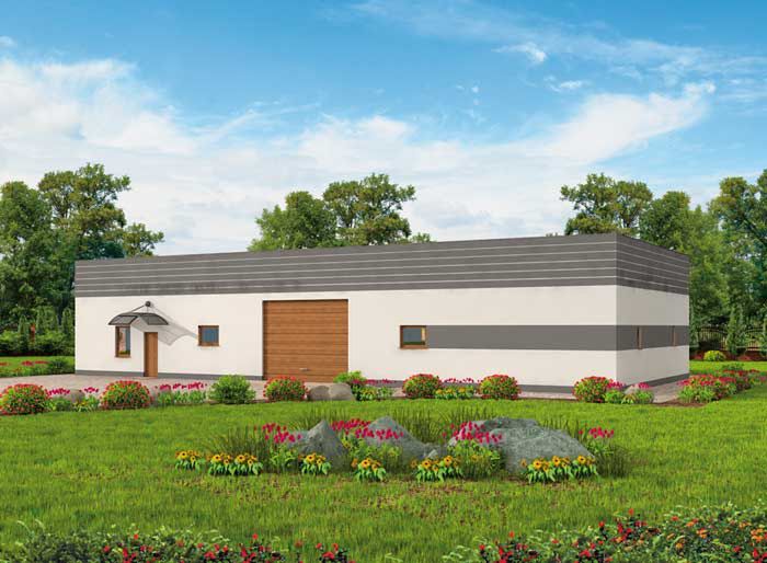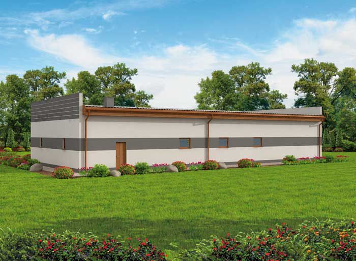 TTechnologia tradycyjna :- powierzchnia użytkowa -296,86m2 - powierzchnia zabudowy -342,00m2 - powierzchnia całkowita -342,00m2 - kubatura -1642,00m3- ściany zewnętrzne nośne murowane grubości 25cm - wszystkie ściany wykonane z pustaków ceramicznych "POROTHERM" - wysokość budynku 5,68m - dach jednospadowy 3° - więźba dachowa drewniana - pokrycie dachu papa lub gonty bitumiczne - wymiar bramy garażowej 4,4x3,5m