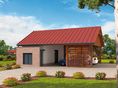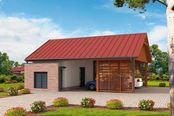Technologia tradycyjna :- powierzchnia użytkowa (z wiatą) -64,20m2 - powierzchnia zabudowy (z wiatą) -73,25m2 - powierzchnia całkowita -73,25m2 - kubatura części przekrytej i zamkniętej ze wszystkich stron -95,02m3- kubatura części przekrytej i nie zamkniętej ze wszystkich stron -216,08m3- kubatura razem -311,10m3 - ściany zewnętrzne nośne murowane grubości 25cm - wszystkie ściany wykonane pustaków ceramicznych "POROTHERM" - wysokość budynku 5,33m - dach dwuspadowy 30° - więźba dachowa drewniana - pokrycie dachu blacha lub blachodachówka