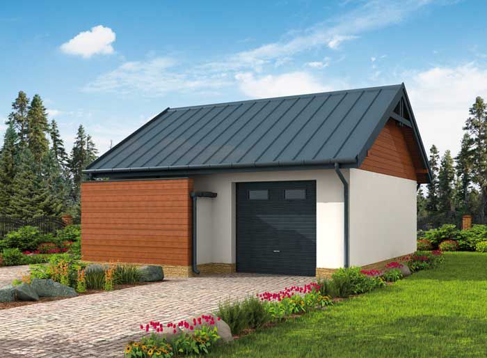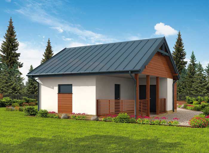 Technologia tradycyjna :- powierzchnia użytkowa -47.02m2 - powierzchnia zabudowy (bez werandy) 41,33m2- powierzchnia zabudowy werandy -15,12m2 - powierzchnia całkowita -56.45m2 - kubatura - 244.45m3 - ściany zewnętrzne nośne murowane grubości 25cm - wszystkie ściany wykonane pustaków ceramicznych "POROTHERM" - wysokość budynku 5,47m - dach dwuspadowy 30° - więźba dachowa drewniana - pokrycie dachu z dachówki blacha lub blachodachówka - wymiar bramy garażowej 2,4x2,4m