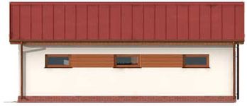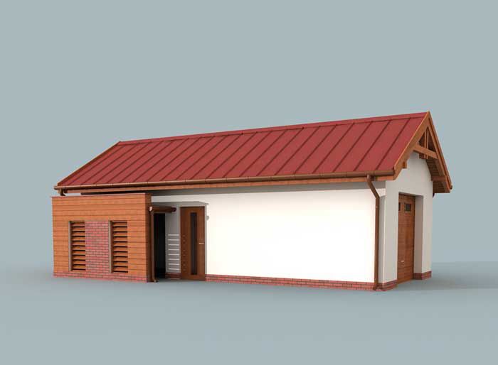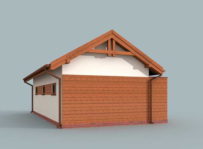Technologia tradycyjna :- powierzchnia użytkowa -38,34m2 - powierzchnia zabudowy -48,58m2 - powierzchnia całkowita -48,58m2 - kubatura części przekrytej i zamkniętej ze wszystkich stron -160,40m3- kubatura części przekrytej i nie zamkniętej ze wszystkich stron -25,86m3- kubatura razem -186,26m3 - ściany zewnętrzne nośne murowane grubości 25cm - wszystkie ściany wykonane pustaków ceramicznych "POROTHERM" - wysokość budynku 4,53m - dach dwuspadowy 30° - więźba dachowa drewniana - pokrycie dachu blacha lub blachodachówka - wymiar bramy garażowej 2,4x2,4m