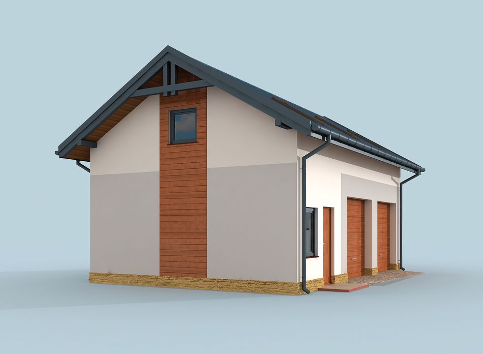 Graficzne opracowanie rzutów poglądowych widocznych na karcie projektu zostało wykonane przez Extradom.pl. Prezentowane przez Extradom.pl wizualizacje wykonane zostały przez autora projektu i należy poczytywać je jedynie za przykład i propozycję wykończenia, wizję architektoniczną autora projektu. Ostateczne wykończenie budynku może nastąpić na wiele sposobów. Szczegółowe rozwiązania zastosowane w oferowanej dokumentacji - w tym również ilość, lokalizacje i wygląd okien, drzwi, kominów - mogą w niewielkim stopniu różnić się od prezentowanej wizualizacji budynku.