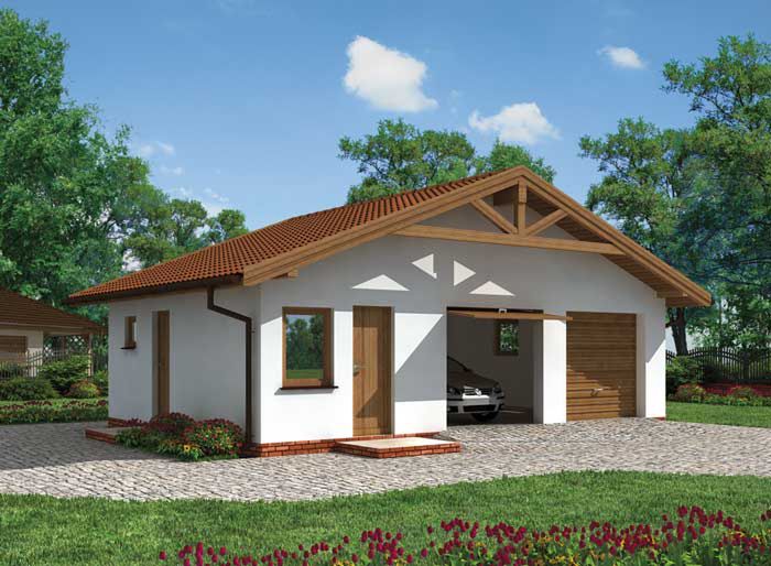 Technologia tradycyjna. Ściany zewnętrzne nośne murowane grubości 25 cm. Ściany wewnętrzne działowe grubości 12 cm. Wszystkie ściany wykonane z pustaków ceramicznych "POROTHERM". Więźba dachowa drewniana o konstrukcji krokwiowo-płatwiowym. Pokrycie dachu z gontów. Wymiar bramy garażowej 2,4x2,2 m.