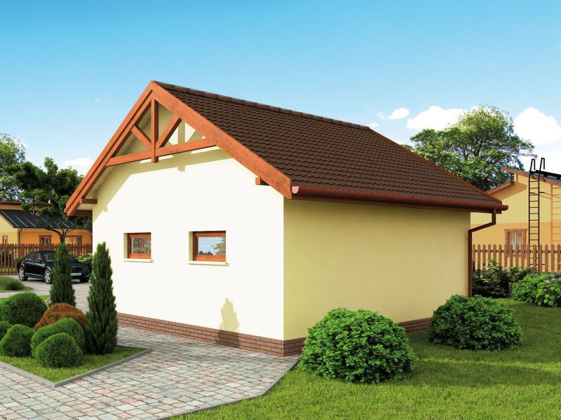Technologia szkieletowa:- powierzchnia użytkowa - 38,94m2 - powierzchnia zabudowy - 44,10m2 - powierzchnia całkowita - 44,10m2 - ściany zewnętrzne: słupki 4x15 rozstawione max. co 40cm obite zewnątrz płytą OSB 3 , a wewnątrz płytą GKF , przestrzeń pomiędzy słupkami wypełniona wełną mineralną 15cm.- wysokość budynku 5,40m.- dach dwuspadowy 30° - więźba dachowa drewniana, układ krokwiowo-kleszczowym.- pokrycie dachowe : dachówka ceramiczna.Technologia murowana