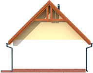 Technologia tradycyjna: - powierzchnia użytkowa -28,82m2 - powierzchnia zabudowy -34,80m2 - powierzchnia całkowita -34,80m2 - kubatura - 153,48m3 - ściany zewnętrzne nośne murowane grubości 25cm - wszystkie ściany wykonane z pustaków ceramicznych "POROTHERM" - wysokość budynku 5,86m - dach dwuspadowy 45° - więźba dachowa drewniana - pokrycie dachu dachówka ceramiczna - wymiar bramy garażowej 2,4x2,2m
