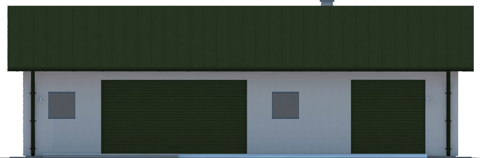 Budynek wykonany w technologii tradycyjnej. Ściany murowane z bloczków z betonu komórkowego grubości 24cm. Bramy o wymiarach 2,50×5,00m i 2,50×2,50m. Komin z cegły ceramicznej pełnej. Więźba dachowa dwuspadowa, drewniana, pokryta blachą trapezową.