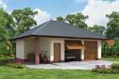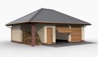 Technologia tradycyjna :- powierzchnia użytkowa przyziemia (bez podcienia) -49,2m2 - powierzchnia zabudowy -57,6m2 - powierzchnia podcienia nie wliczona do powierzchni zabudowy -5,4m2 - powierzchnia całkowita -57,6m2 - kubatura brutto - 261,00m3 - ściany zewnętrzne nośne murowane grubości 25cm - wszystkie ściany wykonane pustaków ceramicznych "POROTHERM" - wysokość budynku 5,40m - dach czterospadowy 30° - więźba dachowa drewniana - pokrycie dachu dachówka cementowa bądź ceramiczna - wymiar bramy garażowej 2,4x2,25m
