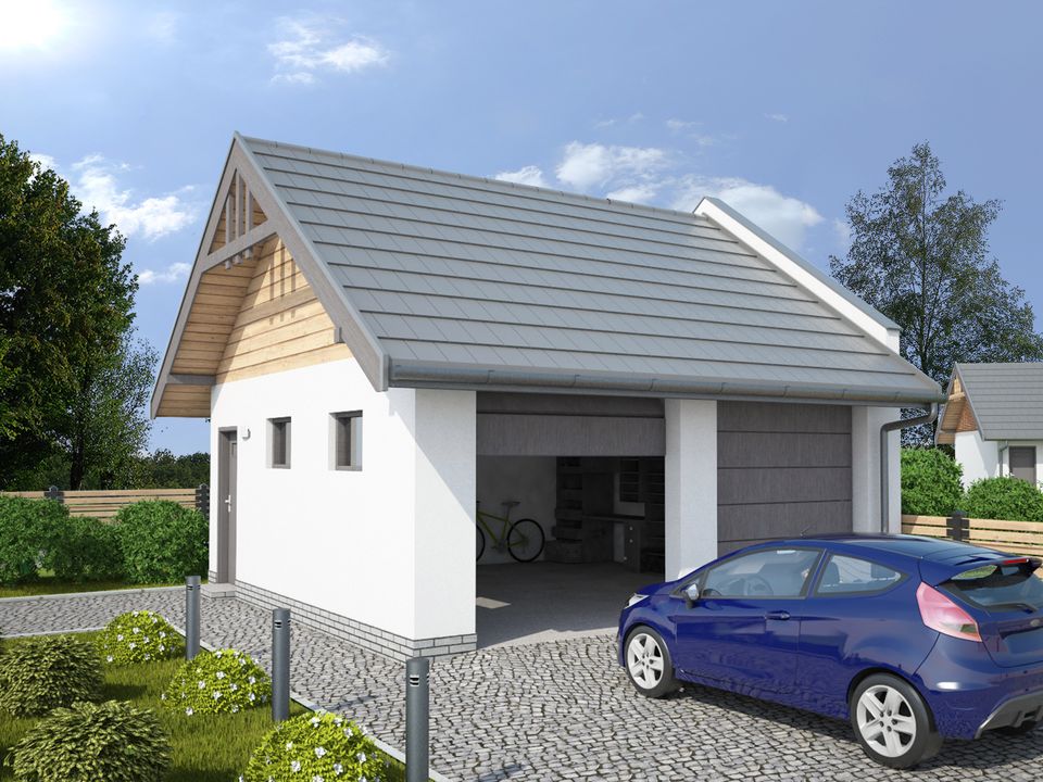Technologia tradycyjna : Zapytaj o dostępność projektu- powierzchnia użytkowa - 36,00m2 - powierzchnia zabudowy - 42,25m2 - powierzchnia całkowita - 42,25m2 - kubatura - 173m3 - ściany zewnętrzne nośne murowane grubości 25cm - wszystkie ściany wykonane z pustaków ceramicznych "POROTHERM" - wysokość budynku 5,54m - dach dwuspadowy 35° - więźba dachowa drewniana - pokrycie dachówka ceramiczna - wymiary bram garażowych 2,3x2,4m