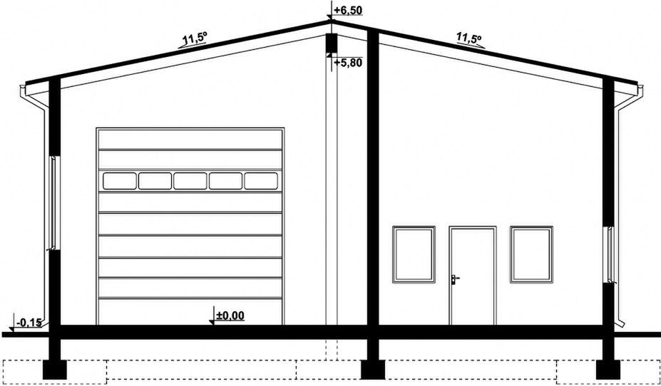 Budynek wykonany w technologii tradycyjnej. Ściany murowane z bloczków z betonu komórkowego grubości 24cm. Bramy o wymiarach 4,00×0,00m. Słupy i podciągi żelbetowe. Więźba dachowa dwuspadowa, drewniana, pokryta blachą trapezową.