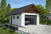 Technologia tradycyjna: ściany zewnętrzne nośne murowane grubości 25cm - wszystkie ściany wykonane z pustaków ceramicznych "POROTHERM" - wysokość budynku 4,86m - dach dwuspadowy 35° - więźba dachowa drewniana- pokrycie dachówka ceramiczna - wymiary bram garażowych 2,30x3,50m