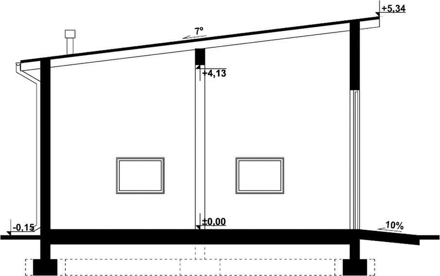 Graficzne opracowanie rzutów poglądowych widocznych na karcie projektu zostało wykonane przez Extradom.pl. Prezentowane przez Extradom.pl wizualizacje wykonane zostały przez autora projektu i należy poczytywać je jedynie za przykład i propozycję wykończenia, wizję architektoniczną autora projektu. Ostateczne wykończenie budynku może nastąpić na wiele sposobów. Szczegółowe rozwiązania zastosowane w oferowanej dokumentacji - w tym również ilość, lokalizacje i wygląd okien, drzwi, kominów - mogą w niewielkim stopniu różnić się od prezentowanej wizualizacji budynku.