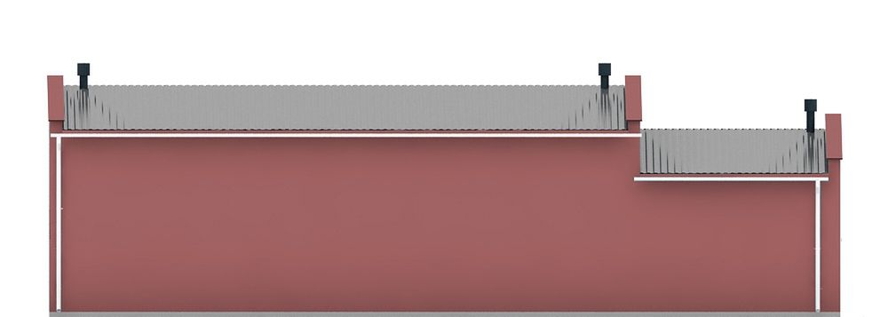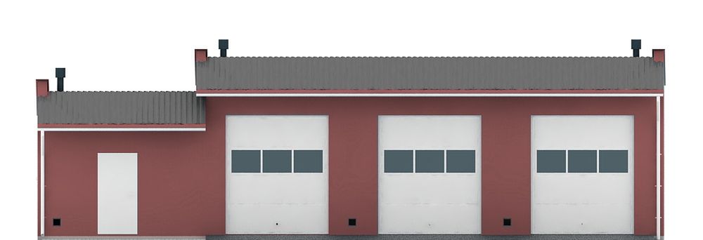 Budynek wykonany w technologii tradycyjnej. Ściany murowane z bloczków z betonu komórkowego grubości 24cm. Bramy o wymiarach 2,60×3,00m. Więźba dachowa jednospadowa, drewniana, pokryta blachą trapezową.
