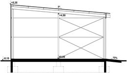 Budynek konstrukcji stalowej. Ściany z blachy trapezowej „T-35”. Bramy o wymiarach 3,80×4,00m. Więźba dachowa jednospadowa, stalowa, pokryta blachą trapezową.
