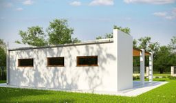 Graficzne opracowanie rzutów poglądowych widocznych na karcie projektu zostało wykonane przez Extradom.pl. Prezentowane przez Extradom.pl wizualizacje wykonane zostały przez autora projektu i należy poczytywać je jedynie za przykład i propozycję wykończenia, wizję architektoniczną autora projektu. Ostateczne wykończenie budynku może nastąpić na wiele sposobów. Szczegółowe rozwiązania zastosowane w oferowanej dokumentacji - w tym również ilość, lokalizacje i wygląd okien, drzwi, kominów - mogą w niewielkim stopniu różnić się od prezentowanej wizualizacji budynku.