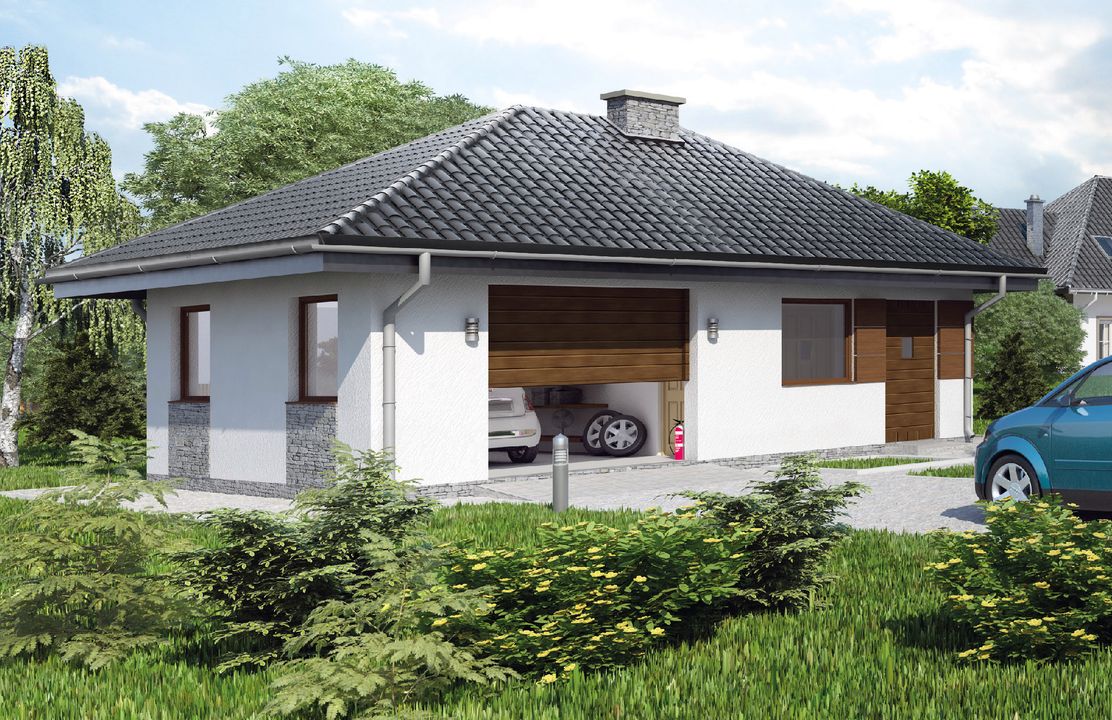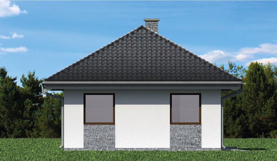 Graficzne opracowanie rzutów poglądowych widocznych na karcie projektu zostało wykonane przez Extradom.pl. Prezentowane przez Extradom.pl wizualizacje wykonane zostały przez autora projektu i należy poczytywać je jedynie za przykład i propozycję wykończenia, wizję architektoniczną autora projektu. Ostateczne wykończenie budynku może nastąpić na wiele sposobów. Szczegółowe rozwiązania zastosowane w oferowanej dokumentacji - w tym również ilość, lokalizacje i wygląd okien, drzwi, kominów - mogą w niewielkim stopniu różnić się od prezentowanej wizualizacji budynku.