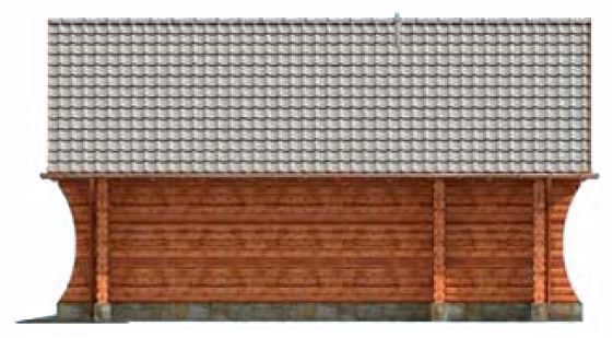Wszystkie ściany wykonane z bali drewnianych fi 250. Więźba dachowa drewniana. Pokrycie dachu z dachówki cementowej bądź ceramicznej. Wymiar bramy garażowej 2,8x2,2m.