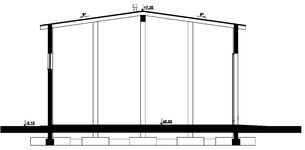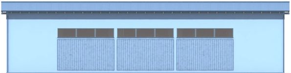 Budynek wykonany w technologii tradycyjnej. Ściany murowane z bloczków z betonu komórkowego grubości 24cm. Więźba dachowa dwuspadowa, drewniana, przekryta blachą trapezową. Bramy o wymiarach 4,50×4,50m.