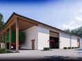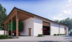 Budynek wykonany w technologii tradycyjnej. Ściany murowane z bloczków szalunkowych i pustaków ceramicznych grubości 25cm. Bramy o wymiarach 4,50×4,50m. Więźba dachowa czterospadowa, drewniana z wiązarów kratowych łączonych płytkami kolczastymi, pokryta blachą trapezową.
