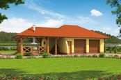 Graficzne opracowanie rzutów poglądowych widocznych na karcie projektu zostało wykonane przez Extradom.pl. Prezentowane przez Extradom.pl wizualizacje wykonane zostały przez autora projektu i należy poczytywać je jedynie za przykład i propozycję wykończenia, wizję architektoniczną autora projektu. Ostateczne wykończenie budynku może nastąpić na wiele sposobów. Szczegółowe rozwiązania zastosowane w oferowanej dokumentacji - w tym również ilość, lokalizacje i wygląd okien, drzwi, kominów - mogą w niewielkim stopniu różnić się od prezentowanej wizualizacji budynku.