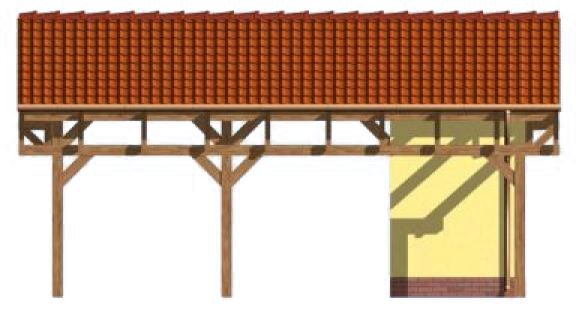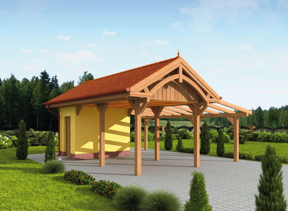 Ściany zewnętrzne: Słupki konstrukcyjne z drewna C24 lub KVH o maksymalnej wilgotności 18% przyjmujemy według obliczeń. Najczęściej 5x15cm, 6,3x15 cm w rozstawie 40 lub 60 cm.; Ściany wewnętrzne: Słupki w ścianach działowych zwykle mają wymiary 5x9 cm; Strop: drewniany, zaprojektowany w zależności od obliczeń; Więźba dachowa: Przekroje w zależności od obliczeń statyczno-wytrzymałościowych; Fundament: Hydroizolacja-izolacja przeciwwilgociowa, płyta ekstrudowana xps, 2xpapa, styropian; Ściana: wełna ISOVER między słupkami, styropian ryflowany TermoOrganika lub wełna ISOVER; Dach: wełna mineralna ISOVER; Pokrycie dachu: dachówka ceramiczna Koramic