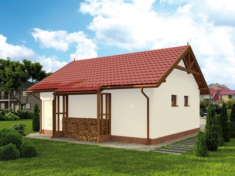 Technologia szkieletowa:- powierzchnia użytkowa - 50,49m2 - powierzchnia użytkowa skadu na drewno - 3m2 - powierzchnia zabudowy - 56,35m2 - powierzchnia całkowita - 56,35m2 - ściany zewnętrzne: słupki 4x15 rozstawione max. co 40cm obite zewnątrz płytą OSB 3 , a wewnątrz płytą GKF , przestrzeń pomiędzy słupkami wypełniona wełną mineralną 15cm.- wysokość budynku 5,28m.- dach dwuspadowy 30° - więźba dachowa drewniana, układ krokwiowo-jętkowy.- pokrycie dachowe : dachówka ceramiczna.Technologia murowana