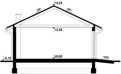 Graficzne opracowanie rzutów poglądowych widocznych na karcie projektu zostało wykonane przez Extradom.pl. Prezentowane przez Extradom.pl wizualizacje wykonane zostały przez autora projektu i należy poczytywać je jedynie za przykład i propozycję wykończenia, wizję architektoniczną autora projektu. Ostateczne wykończenie budynku może nastąpić na wiele sposobów. Szczegółowe rozwiązania zastosowane w oferowanej dokumentacji - w tym również ilość, lokalizacje i wygląd okien, drzwi, kominów - mogą w niewielkim stopniu różnić się od prezentowanej wizualizacji budynku.