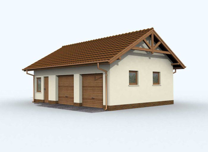 Technologia tradycyjna: ściany zewnętrzne nośne murowane grubości 25cm. Wszystkie ściany wykonane pustaków ceramicznych. Więźba dachowa drewniana. Pokrycie dachu dachówka cementowa bądź ceramiczna. Wymiar bramy garażowej 2,4x2,4m.