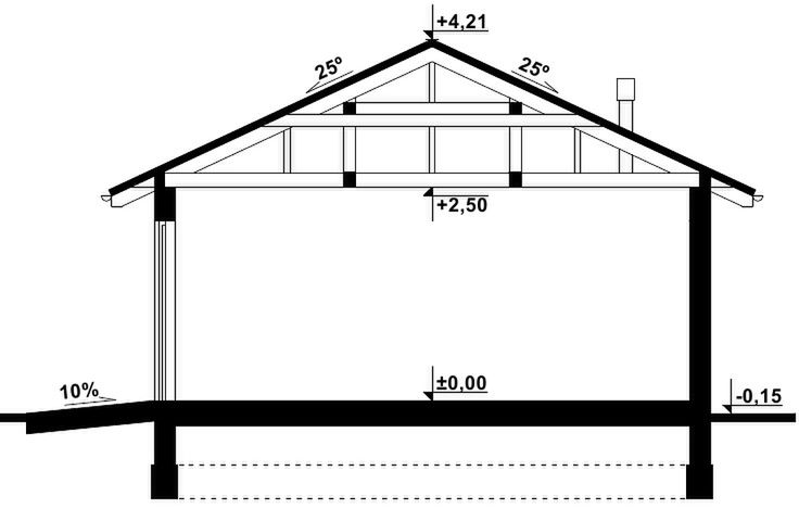 Budynek wykonany w technologii tradycyjnej. Ściany murowane z bloczków z betonu komórkowego grubości 24cm i 12cm. Brama o wymiarach 2,40×2,20m. Więźba dachowa czterospadowa, drewniana, pokryta blachodachówką.