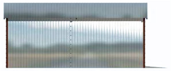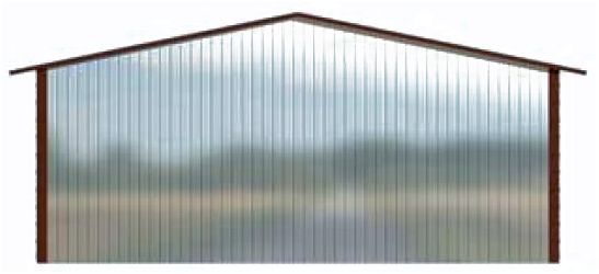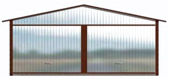 Technologia tradycyjna: budynek zaprojektowano w technologii szkieletu stalowego, pokrycie dachu z blachy trapezowej, wymiar bram garażowych 2,7 x 1,85 m.