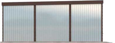 Technologia tradycyjna: budynek zaprojektowano w technologii szkieletu stalowego, pokrycie dachu z blachy trapezowej, wymiar bramy garażowej 2,5 x 2,125 m.