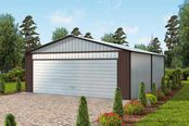 Technologia: budynek zaprojektowano w technologii szkieletu stalowego, pokrycie dachu z blachy trapezowej, wymiar bramy garażowej 5 x 2,125 m.