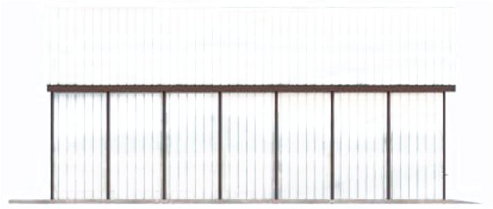 Technologia: --budynek zaprojektowano w technologii szkieletu stalowego - pokrycie dachu z blachy trapezowej- wymiar bramy garażowej 5,00x2,125m. Garaż blaszany otynkowany: