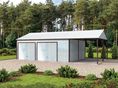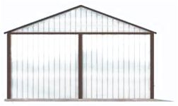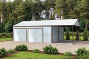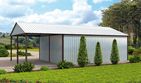 Technologia : --budynek zaprojektowano w technologii szkieletu stalowego - pokrycie dachu z blachy trapezowej- wymiar bram garażowych 2,50x2,125m.Garażu blaszanego otynkowanego: