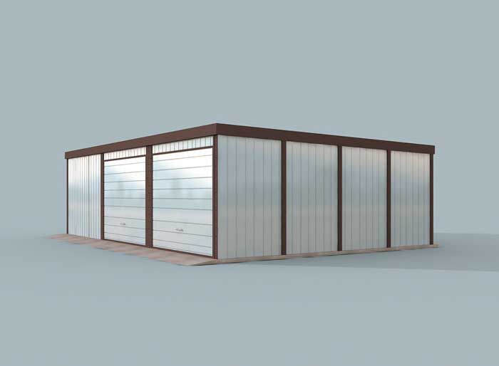 Technologia :- powierzchnia użytkowa -49,82m2 - powierzchnia zabudowy -50,98m2 - powierzchnia całkowita -50,98m2 - kubatura - 121,00m3 - wysokość budynku 2,44m - dach jednospadowy 1° --budynek zaprojektowano w technologii szkieletu stalowego - pokrycie dachu z blachy trapezowej- wymiar bram garażowych 2400x2125 Garaż blaszany otynkowany