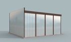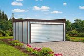 Technologia tradycyjna: budynek zaprojektowano w technologii szkieletu stalowego, pokrycie dachu z blachy trapezowej, wymiar bram garażowych 4,75 x 2,125 m.