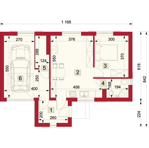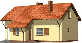 Graficzne opracowanie rzutów poglądowych widocznych na karcie projektu zostało wykonane przez Extradom.pl. Prezentowane przez Extradom.pl wizualizacje wykonane zostały przez autora projektu i należy poczytywać je jedynie za przykład i propozycję wykończenia, wizję architektoniczną autora projektu. Ostateczne wykończenie budynku może nastąpić na wiele sposobów. Szczegółowe rozwiązania zastosowane w oferowanej dokumentacji - w tym również ilość, lokalizacje i wygląd okien, drzwi, kominów - mogą w niewielkim stopniu różnić się od prezentowanej wizualizacji budynku.