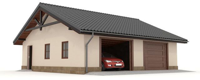 Technologia tradycyjna, ławy i ściany fundamentowe betonowe, ściany murowane z pustaków z betonu komórkowego grubości 24 cm, Dach dwuspadowy o konstrukcji drewnianej, pokryty blachodachówką, tynk zewnętrzny. Bramy garażowe segmentowe. Wykończenie: Ściany zewnętrzne wykończone tynkiem silikonowym w kolorze jasnym. Cokół budynku wykonany tynkiem mozaikowym. Wymiary bram garażowych: 300x300.