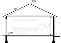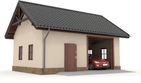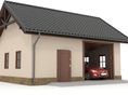 Technologia tradycyjna, ławy i ściany fundamentowe betonowe, ściany murowane z pustaków z betonu komórkowego grubości 24 cm, Dach dwuspadowy o konstrukcji drewnianej, pokryty blachodachówką, tynk zewnętrzny. Bramy garażowe segmentowa. Wykończenie: Ściany zewnętrzne wykończone tynkiem silikonowym w kolorze jasnym. Cokół budynku wykonany tynkiem mozaikowym. Wymiary bram garażowych: 300 x 300.
