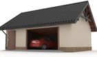 Technologia tradycyjna, ławy i ściany fundamentowe betonowe, ściany murowane z pustaków z betonu komórkowego grubości 24 cm, Dach dwuspadowy o konstrukcji drewnianej, pokryty blachodachówką, tynk zewnętrzny. Bramy garażowe segmentowa. Wykończenie: Ściany zewnętrzne wykończone tynkiem silikonowym w kolorze jasnym. Cokół budynku wykonany tynkiem mozaikowym. Wymiary bram garażowych: 400x225.