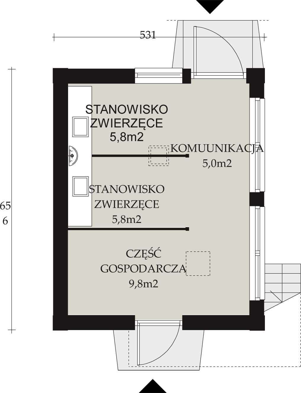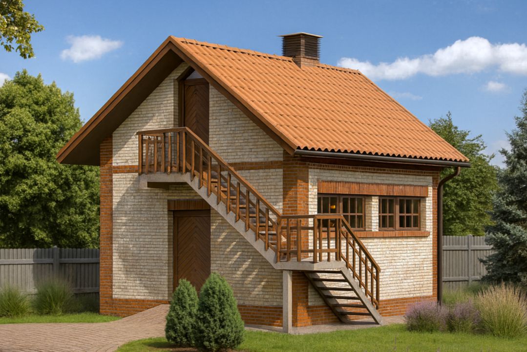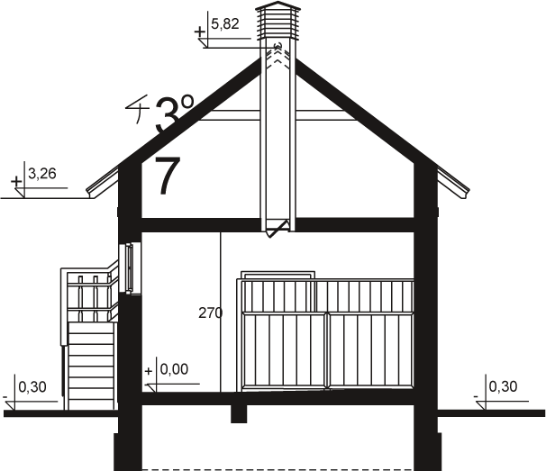 Ściany zewnętrzne: warstwowe z bloczków SILKA. Strop: żelbetowy. Schody: zewnętrzne stalowe. Dach: dwuspadowy o nachyleniu 37 stopni, więźba drewniana, krycie płytami falistymi EUROFALA. Poziom kalenicy: 6,22 m od terenu