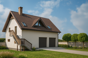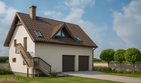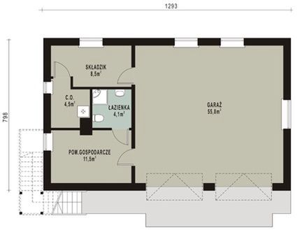 Graficzne opracowanie rzutów poglądowych widocznych na karcie projektu zostało wykonane przez Extradom.pl. Prezentowane przez Extradom.pl wizualizacje wykonane zostały przez autora projektu i należy poczytywać je jedynie za przykład i propozycję wykończenia, wizję architektoniczną autora projektu. Ostateczne wykończenie budynku może nastąpić na wiele sposobów. Szczegółowe rozwiązania zastosowane w oferowanej dokumentacji - w tym również ilość, lokalizacje i wygląd okien, drzwi, kominów - mogą w niewielkim stopniu różnić się od prezentowanej wizualizacji budynku.