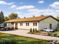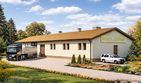 Graficzne opracowanie rzutów poglądowych widocznych na karcie projektu zostało wykonane przez Extradom.pl. Prezentowane przez Extradom.pl wizualizacje wykonane zostały przez autora projektu i należy poczytywać je jedynie za przykład i propozycję wykończenia, wizję architektoniczną autora projektu. Ostateczne wykończenie budynku może nastąpić na wiele sposobów. Szczegółowe rozwiązania zastosowane w oferowanej dokumentacji - w tym również ilość, lokalizacje i wygląd okien, drzwi, kominów - mogą w niewielkim stopniu różnić się od prezentowanej wizualizacji budynku.