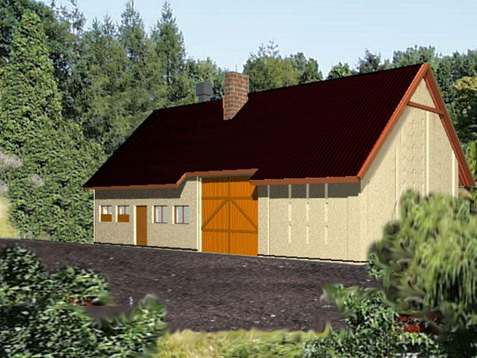 Graficzne opracowanie rzutów poglądowych widocznych na karcie projektu zostało wykonane przez Extradom.pl. Prezentowane przez Extradom.pl wizualizacje wykonane zostały przez autora projektu i należy poczytywać je jedynie za przykład i propozycję wykończenia, wizję architektoniczną autora projektu. Ostateczne wykończenie budynku może nastąpić na wiele sposobów. Szczegółowe rozwiązania zastosowane w oferowanej dokumentacji - w tym również ilość, lokalizacje i wygląd okien, drzwi, kominów - mogą w niewielkim stopniu różnić się od prezentowanej wizualizacji budynku.