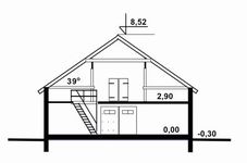 Graficzne opracowanie rzutów poglądowych widocznych na karcie projektu zostało wykonane przez Extradom.pl. Prezentowane przez Extradom.pl wizualizacje wykonane zostały przez autora projektu i należy poczytywać je jedynie za przykład i propozycję wykończenia, wizję architektoniczną autora projektu. Ostateczne wykończenie budynku może nastąpić na wiele sposobów. Szczegółowe rozwiązania zastosowane w oferowanej dokumentacji - w tym również ilość, lokalizacje i wygląd okien, drzwi, kominów - mogą w niewielkim stopniu różnić się od prezentowanej wizualizacji budynku.